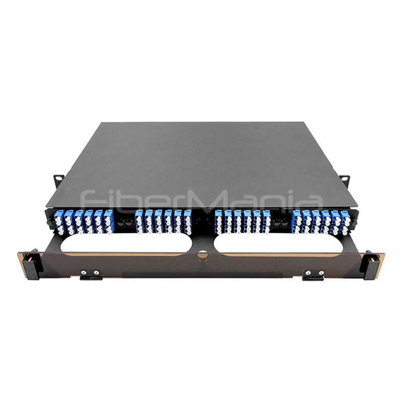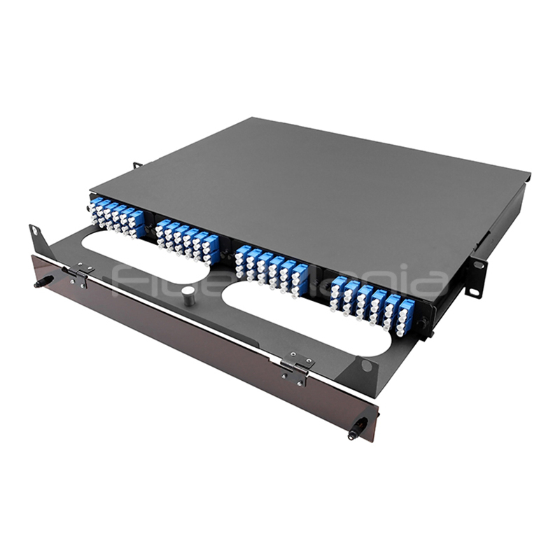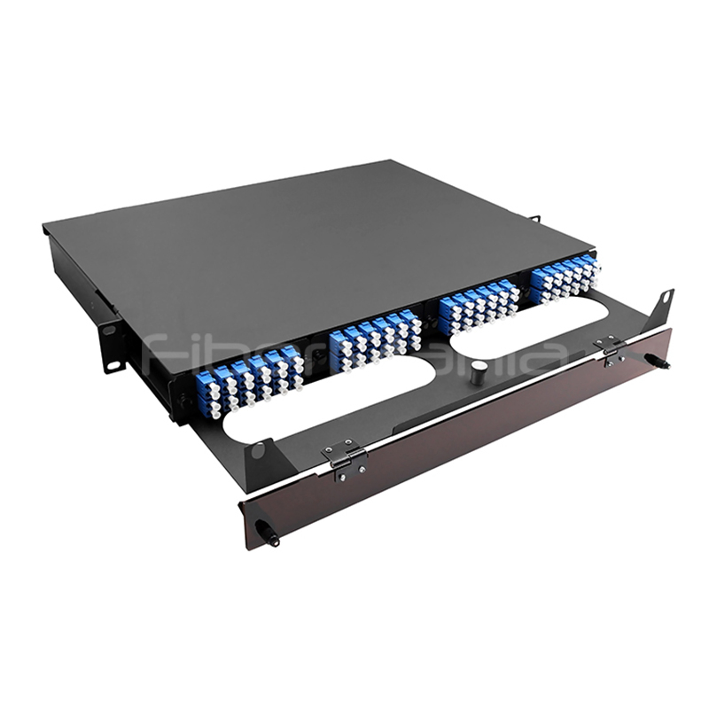 Système de câblage fibre 1U 19 pouces 96 cœurs Panneau de brassage à fibre optique MTP MPO